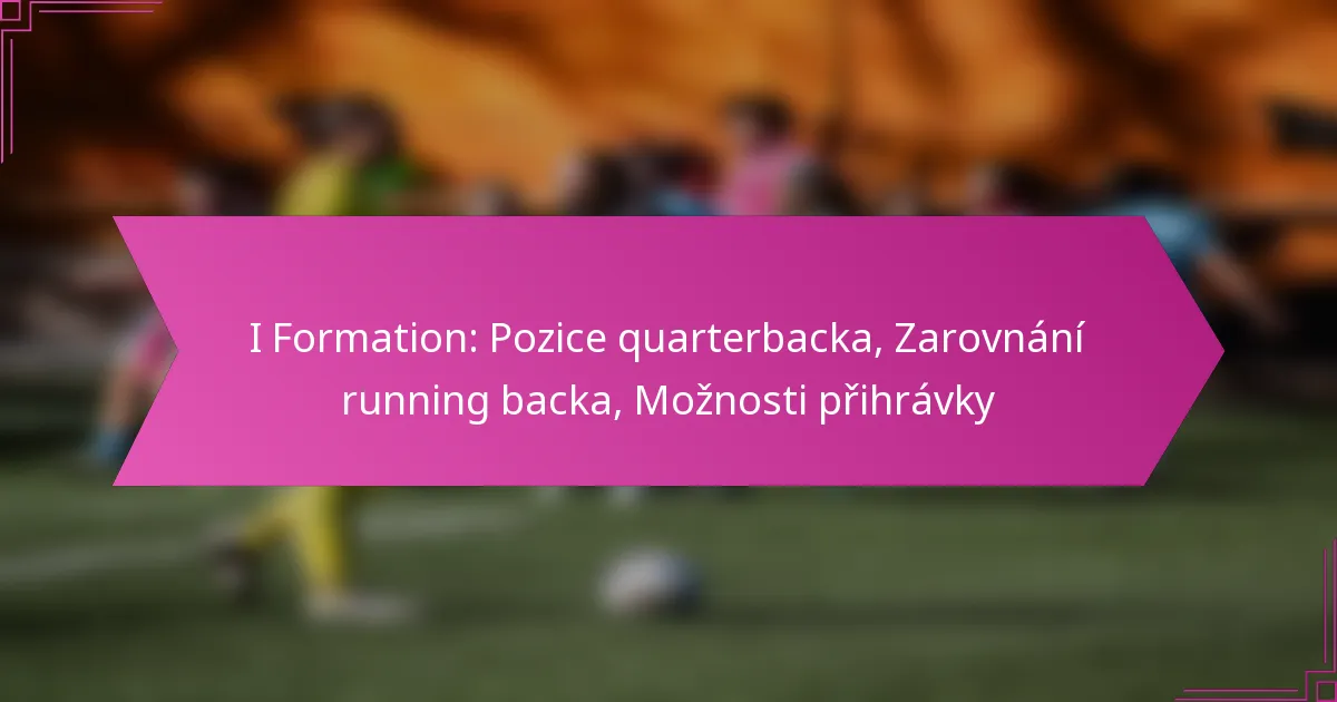 I Formation je klasické ofenzivní uspořádání v americkém fotbale, které se vyznačuje quarterbackem umístěným přímo za centrem, s dvěma běžci seřazenými v přímce za ním. Toto uspořádání zdůrazňuje vyvážený útok, který umožňuje jak běhové, tak pasové hry a poskytuje quarterbackovi více možností.